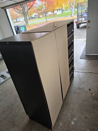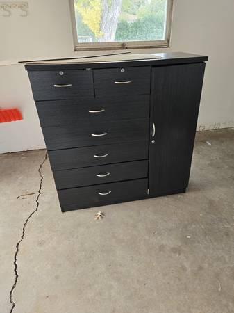 L: 47 1/4" H: 48 3/4" D: 17" Free 7-drawer gentleman's closet. Wayfair purchase 5 years ago. Needs some reinforcing to stabilize