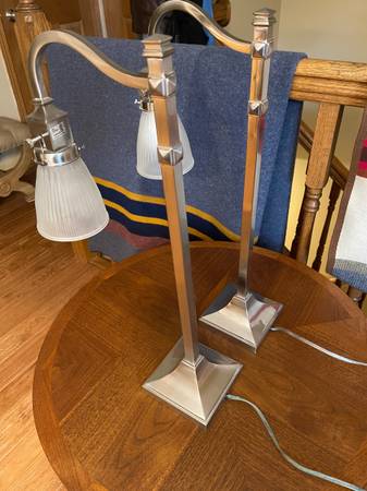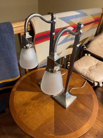 Very nice set of Crate and Barrel table lamps in a chrome finish that are in very good condition. The set for $95. The lamps are 24 inches tall. Crate & Barrel lamps , CB2 lamp