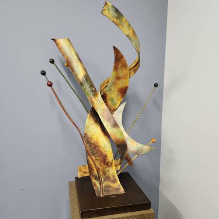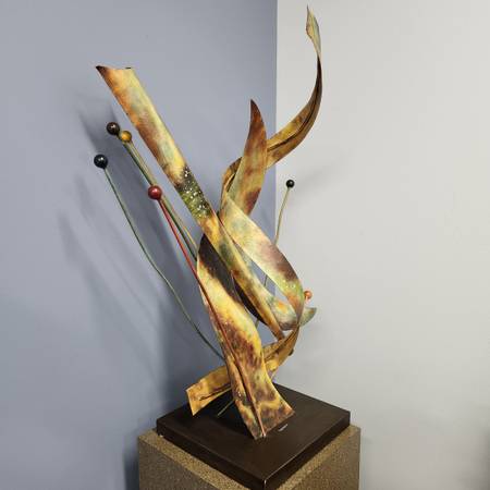 Mid-Century Modern style metal abstract table top sculpture. 36.5" tall, 26.5" wide.
