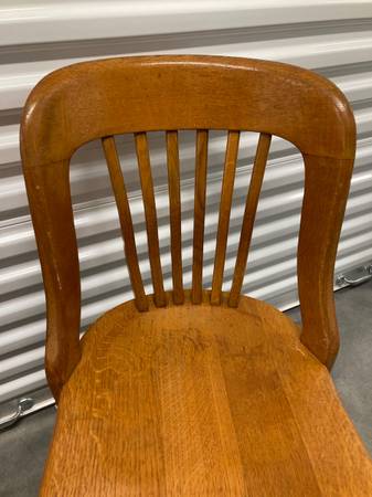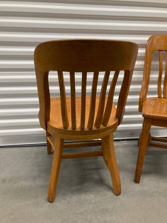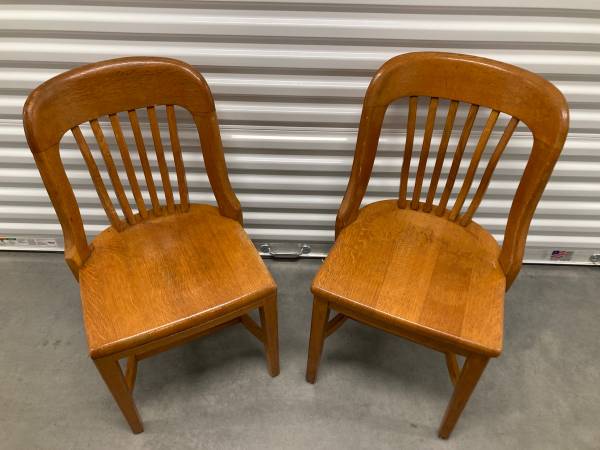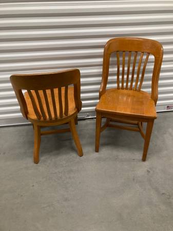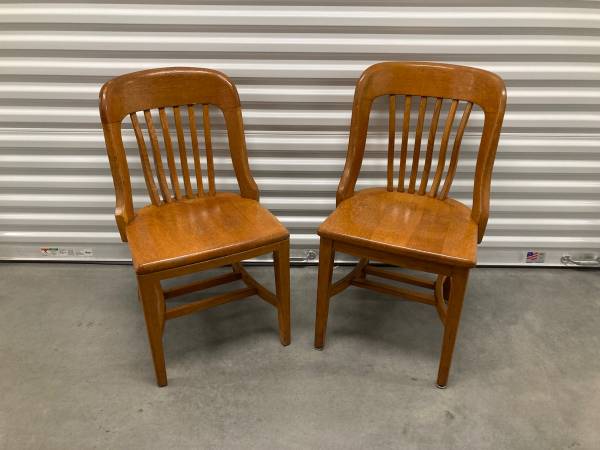 A pair of vintage Banker Office chairs Quarter sawn oak Heavy and solid The pair for $50 Lovescooter