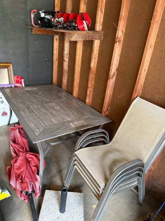 Table is in excellent condition. Umbrella base is very heavy and also in excellent condition. The umbrella its sun faded but still functional including solar lights last time it was used before putting in storage. For this price we would also help deliver within the Twin Cities after it is paid for if needed. Cash sale preferred.