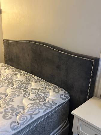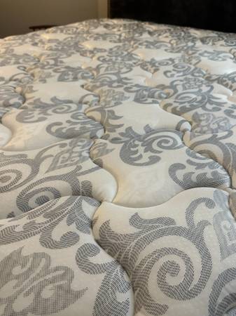 Very nice Queen bed frame (adjustable) with box spring/mattress set /ready to go! Whole bed, luxurious firm but soft feel, pillow top! Used sparingly in Airbnb - great shape! No stains, NO smoking, No pets