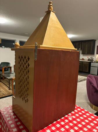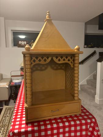 Beautiful Great vibes, great condition real wood Temple with drawer. Can use for entry shelf. 21”W, 16”D, 24”lower height, extra top dome 17”. It’s in 2 pieces for easy lift. We have now big room...