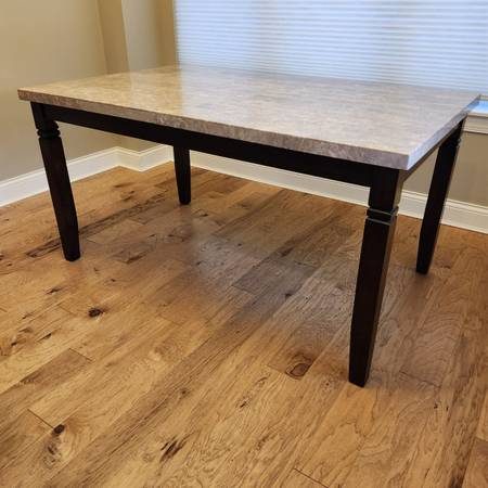 Stone top with solid wood frame dining table. 30.75" tall, 60" long, and 36" wide.