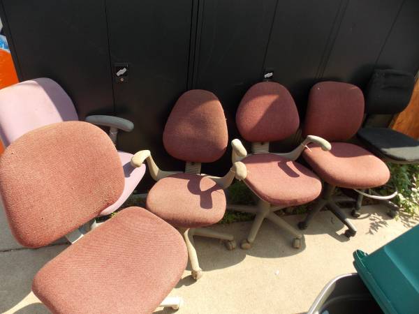 The $10.00 price is per chair if you buy them all. Otherwise it's $15 for just one , or $13 each for 2 or $12 each for 3-5 chairs. All 6 chairs have good working and spinning wheels and all have been stored in a house basement, so in good shape. Most of them have adjustable height and Back Adjust also. 3 of them have armrests and 3 don't.People can use these for ,, Home office. Poker room Table chairs. Garage or Man Cave Comfortable sitting and relaxation chair..Call (952)854-5 seven eight six