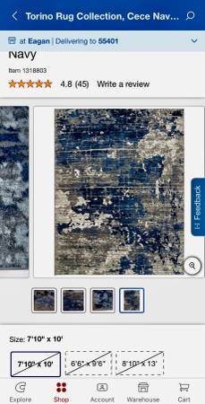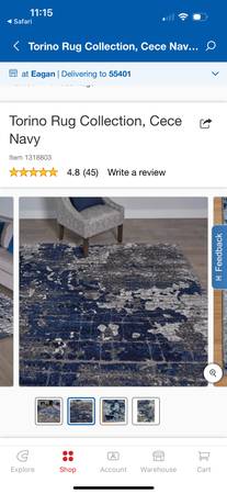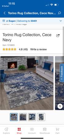 This Tuscany Area Rug Cece Navy size 7ft 10in X 10ft is in good condition and has been cleaned with an upholstered deep cleaner. It is from Costco. Pick up is in Bloomington right by the Mall of America. If interested Call or Text Steve @ show contact info