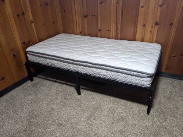 Metal bed frame to fit Twin XL. Gently used, clean mattress can be included if you want - in good shape!