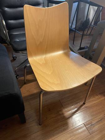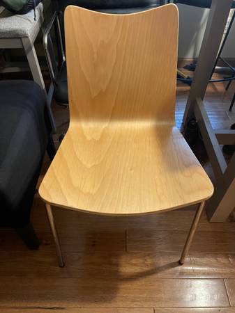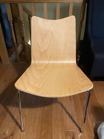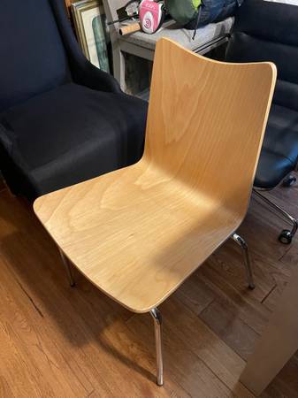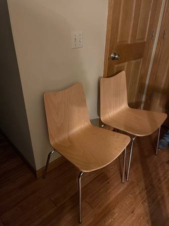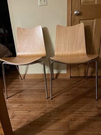Two vintageDanish Modern wood chairs with chrome legs that arein excellent condition. These chairs are made with super high quality wood. The set for $180