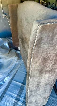 Priced to sell FAST FIRM $200 NEW QUEEN HEADBOARD and 3 Velvet side panels, all parts, wood slats to hold mattress, PERFECT SHAPE! Pick up @ the Crystal airport. (Highest point headboard 5ft)...