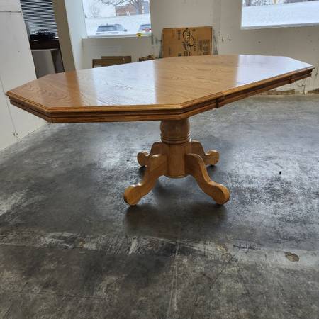 Large vintage oak dining table with one large leaf. 30.75" tall, 47.5" wide, and 72" long with the leaf in. The leaf alone is 24" wide.