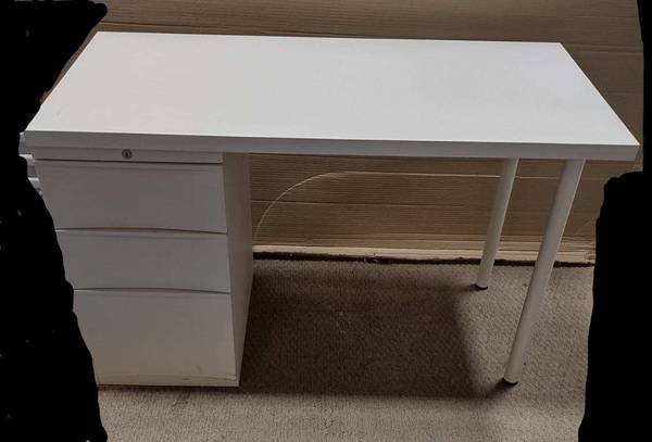 Calls only 6 1 2 - 4 2 7 - 3 5 5 3 to set up day and time to view or purchase We have (3) of these 42w x 24 White Table Desk with (1) White Metal 2 or (1) 3 Drawer File Cabinet Legs unscrew from...