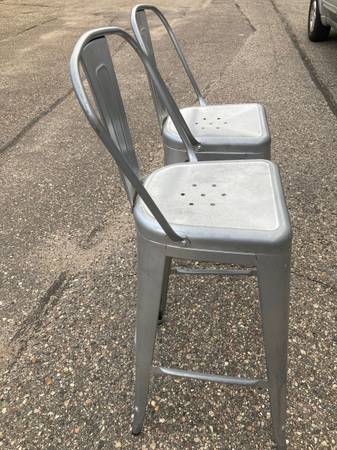 I have a pair of silver metal industrial-looking tall bar chairs. Could be used at a high top table, too. Please see pictures. $30 for the pair Cash or Venmo only, please. I only communicate through...