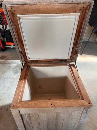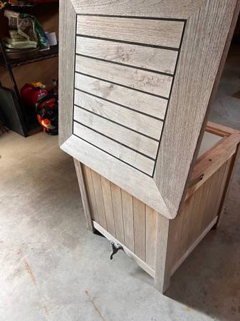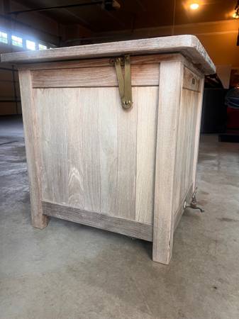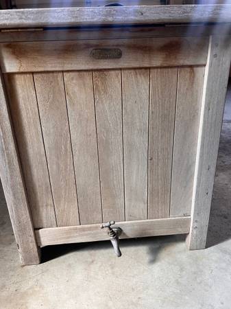 Beautiful Teak Wood Restoration Hardware Outdoor/Deck/Patio Insulated Cooler. Faucet release for water. Great Condition.