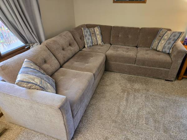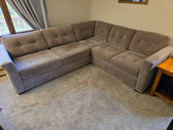 9'x8'x32" Sectional for sale, custom purchased from Schneidermans 5yrs ago for $1500. USA made. Lightly used. Couple with no kids, no pets and non-smokers. One of us always sat in separate rocker. Excellent condition. Comes with pillows pictured.