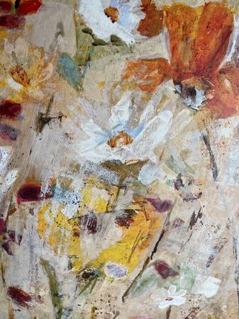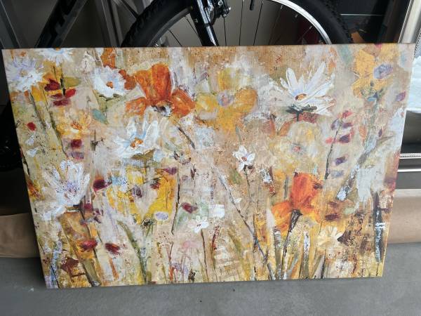 I have two pieces of artwork that I am selling for my sister. Artwork #1: Asking $70 Measures 24”x36” Stretched canvas Colors: taupe, orange, red, yellow, white… Artwork #2: Asking $30 Measures...