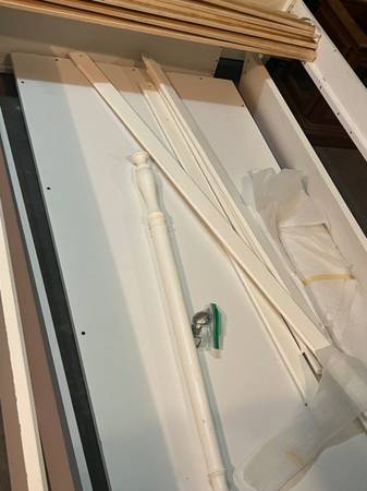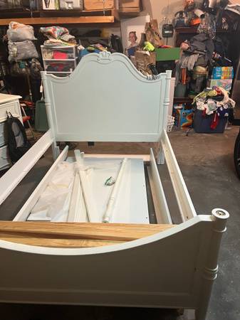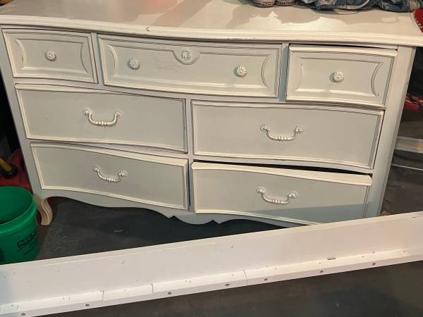 Full size bed can be turned into poster bed or canopy with included pieces. Dresser.