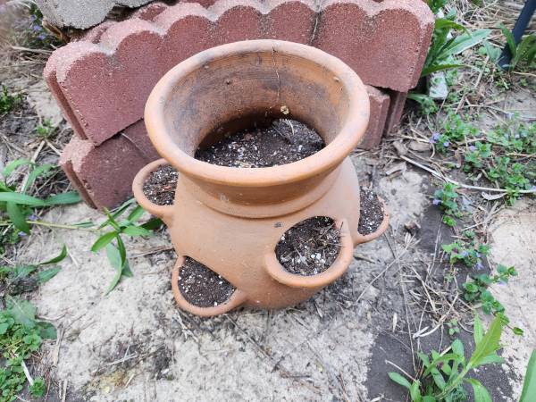 Strawberry planter jars are ideal for strawberries, herbs, small flowers, and succulents like hens and chicks. The drainage system supports healthy plant growth by preventing water accumulation or over-watering, while its stylish design complements various decor styles, meeting your desire for both functionality and visual appeal. Pockets allow for creative gardening all in one pot. Terra cotta material is porous and allows roots to breath, it also helps balance pH levels for healthier plants. Large strawberry planter is the first picture, small strawberry planter is in the second picture. $20 for the large planter, $12 for the small planter. The large one is 14" tall; the small one is 10" tall. Cash only.