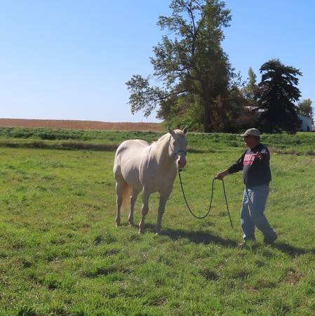 Can be fenced next to stud colts. Great with the babies and knows how to treat the mares nice. Loves the attention when you go in with him and the mares and babies.