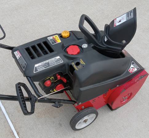 For sale is our Yard Machines 5hp 21" single stage snow blower runs good has electric starter 1st $125