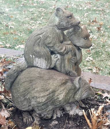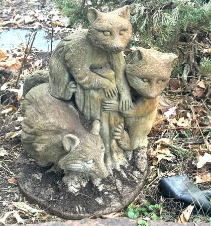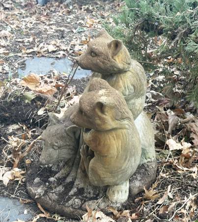 Heavy cement lawn statue, weighs about 80 lbs. Stands about 18" tall. Really cute. Great condition; Ready display. You can take this today.