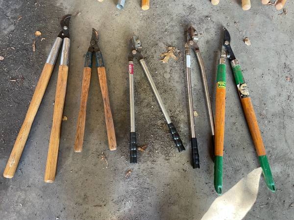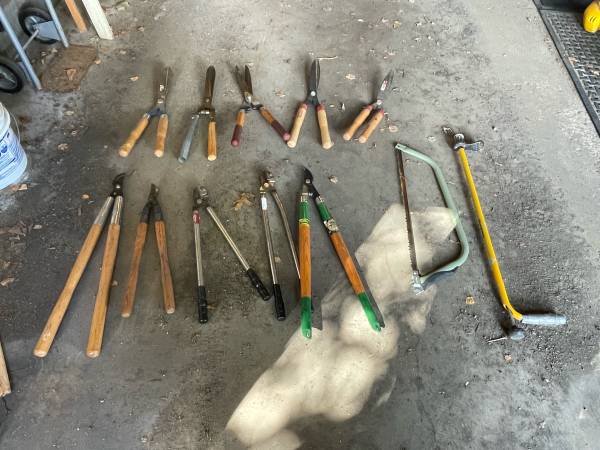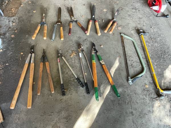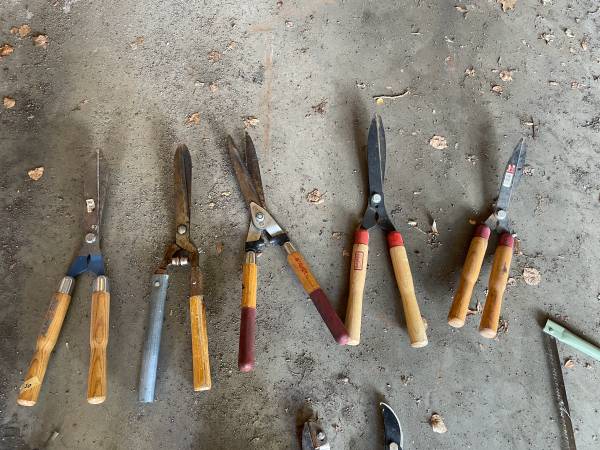 Doing a little garage clean-out for a friend and found a nice stash of yard tools, all in good working order. Available (priced individually): • Hedge shears – $10 each (several pairs, wood or metal...
