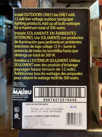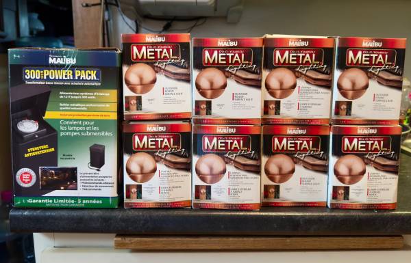 New!!! Malibu 300 Watt Power Pack for Low Voltage Outdoor Transformer. Includes eight metal outdoor round surface lights. Copper finish. (($350. Total value) $100. Cash / Venmo Pick up in South...