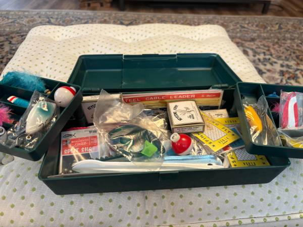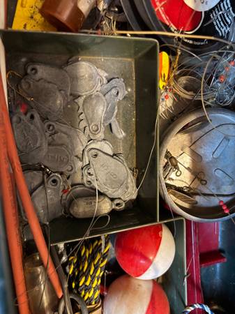 Five Torches propane- tanks -fishing gaffs - alot GE lanterns lots of miscellaneous- ice fishing , two fishing tackle boxes and contents…season is coming. Downsizing A True DEAL