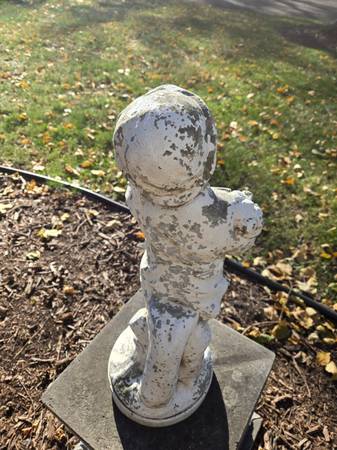 Vintage Boy Cement Statue for Garden or Yard Measures approx: 22" high x 8" wide The statue is of the little boy is in vintage condition and does have chipping to the white paint so is showing the...