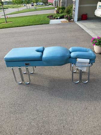 Therapy Table for sale. Can be used for adjunctive therapies (muscle stimulation, acupuncture, massage and other soft-tissue protocols, etc.). Used but in very good condition. Headpiece can be re-covered for minor aesthetics but not necessary. Headpiece is adjustable as well as having some adjustable features in the pelvic region. A "Dr. Widmoyer's Relaxo-Product", made in the USA (Indiana). Must pick-up (unless willing to pay additional fee for delivery). No scams. Cash only. $499.00 or best offer.