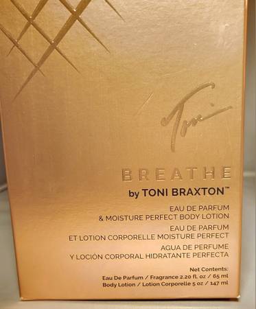 I'm selling a brand new Toni Braxton "Breathe" gift set. The box contains: Toni Braxton's Breathe Fragrance and Breathe Moisture Perfect lotion. This set was almost $120 after tax. The fragrance and...