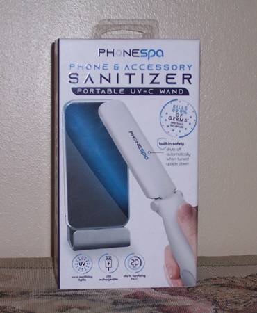 Sanitizes germs and bacteria with UV-C Light. Works on Anything: Sanitizes doorknobs, bathroom surfaces and other household items quickly and easily without chemicals or irritants. Multi-Option Use: Can sanitize objects in two ways by passing it on the object’s surface or through the stand-alone position. Safety Feature: Includes an internal mechanism that turns the wand off when the UV light radiates upwards to avoid causing injury to the eyes. Compact and Light: Travel friendly easily fits in your purse or luggage. USB Charging: Allows you to charge it from any power source. Portable, foldable design with self-standing base. Sealed Box.
