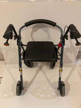 Adjustable seat height from 18″, 20″, 22″, and 24″ for a custom fit, from petite to tall. Features include 8″ wheels, under seat pouch, padded seat, patented feather touch hand brakes, flip up back, and self-threading height adjustment knobs.