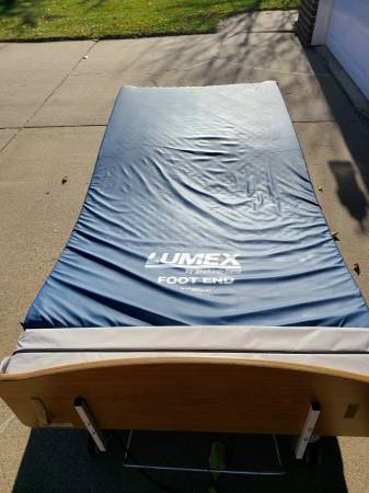Invacare IHCS7 extra long adjustable bed. 87" x 44" bed includes mattress. My father was using this in his memory care facility and it quit working a week ago. Since insurance could provide a leased bed the same day, we decided to go that route, so we no longer need this bed. We tried some basic troubleshooting steps to get it working again, but we were not successful. When we press any button on the remote, we can see a lighted locked icon on the power box, so the bed is getting power. This is a very nice bed that I am confident someone can fix or get repaired. The bed is on wheels, so easy to push and the mattress has been disinfected. The bed weighs about 200lbs, so you will need adequate manpower to get it loaded up.