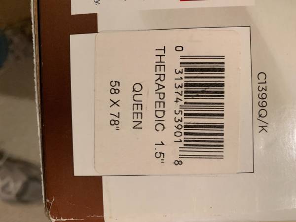 Therapedic 1.5 inch thick queen size mattress topper. You’ll sleep like a baby with this on your mattress.