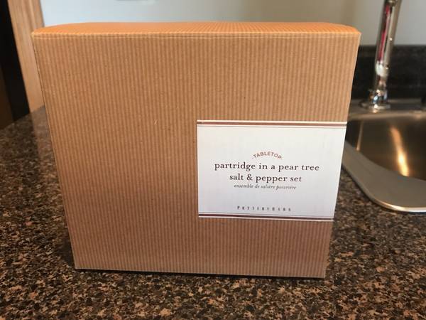 New in Box - only removed for photos. In mint condition. Tree - 5" H / 5" W Pear - 2.25" H / 2" W Partridge - 2.75" W / 2" H / 1.75" D $45 or best offer. Cash only. (Pottery Barn Winter Bird table...