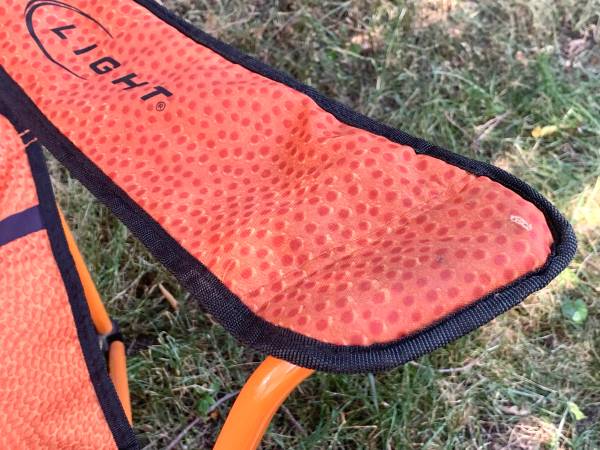 Normal signs of wear. Left armrest has tiny tear (see photo). Drink holder is a “net” with no bottom, can be sewn together or use to play mini basketball.