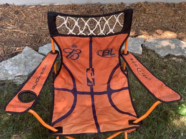 Awesome NBA basketball folding lawn chair! Rare promo item from Budweiser. Cool white netting detail along the back!