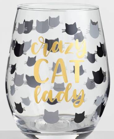 Crazy Cat Lady Glass 16oz Stemless Wine Tumbler Glass - household...