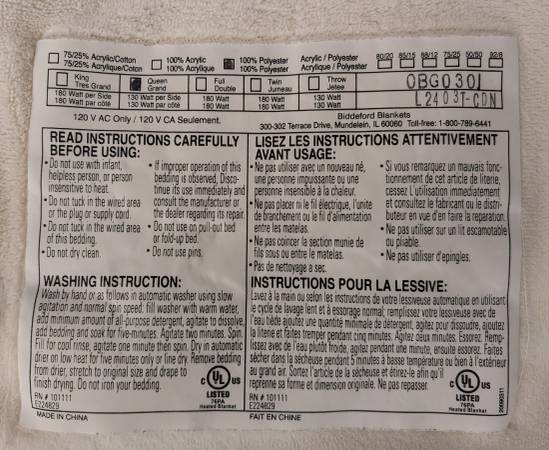 – Queen size – Ivory White, 100% Polyester – Two controllers for independent control on each side of the bed – 10 heat settings – Made by Biddeford Blankets – Good condition – Non-smoking household...