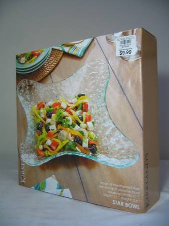 This is a new, never used STAR BOWL by Kirkland composed of hammered glass in a star shaped pattern.