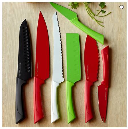 This color-coded knife series is made exclusively for Williams Sonoma by Kai, one of Japan's largest and most historic cutlery companies. Comprised of seven essential knives, this set adds bright color to daily food prep along with super-sharp performance, lightweight handling and easy dishwasher cleaning.