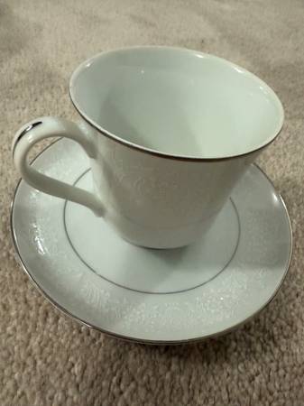 6 place setting with dinner plate, salad plate, cup and saucer. Never used.
