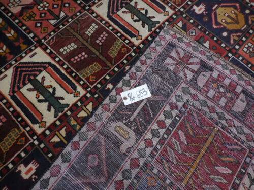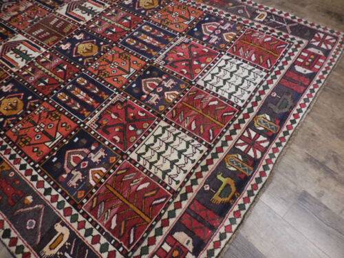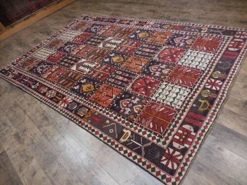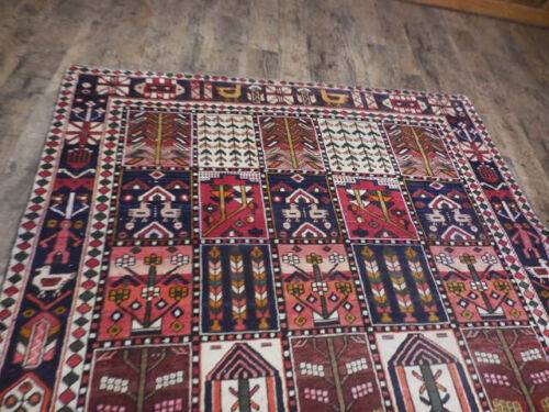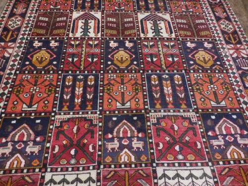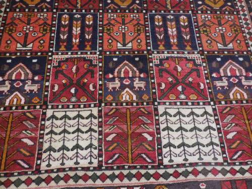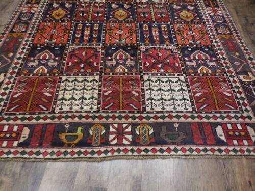 This is a richly detailed, tribal, Antique Oriental rug, that was hand-knotted in Turkey in the 1930's. The design style is known as a BAHKTIAR. This BAHKTIAR is in excellent condition, and features a visually beautifully design of six inch diamonds, with various floral elements within each. The exact size is 5.9x4.0 (so just about 6x4).