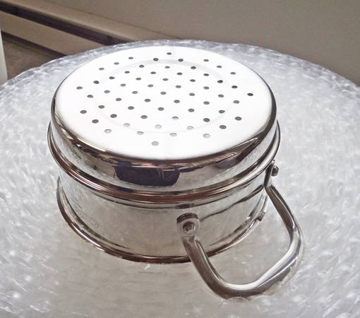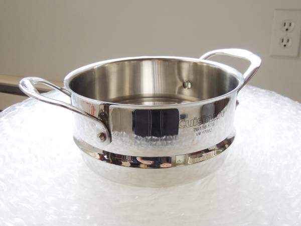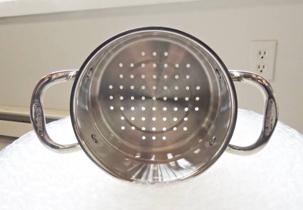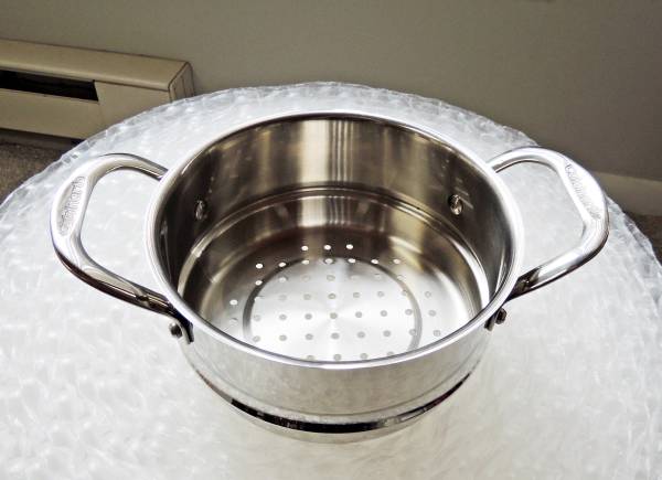 Here is a great steamer for vegetables and other things. I bought this with my 2.5 quart pan, but found I don't steam many items, so maybe you do! May or may not have been used once. Stainless steel. Handles on each side. Photos are of actual item you will receive so please see all photos.
