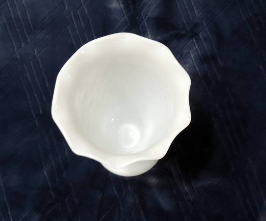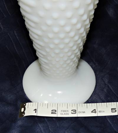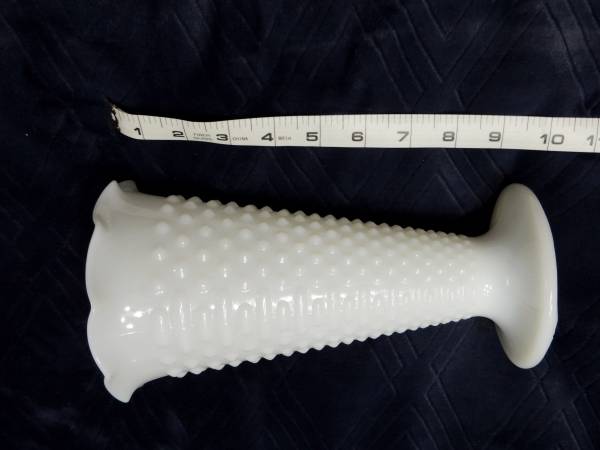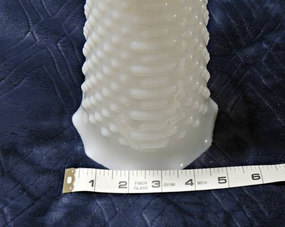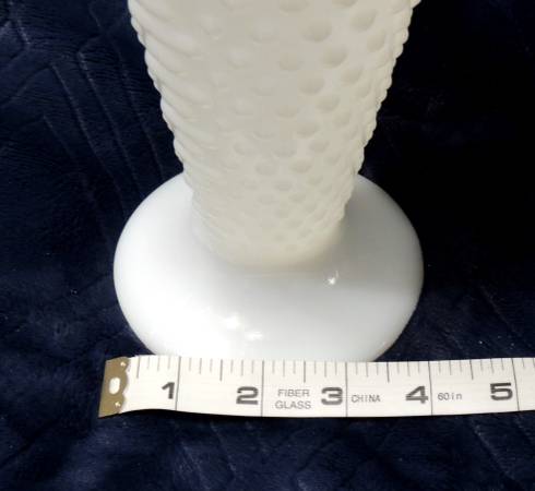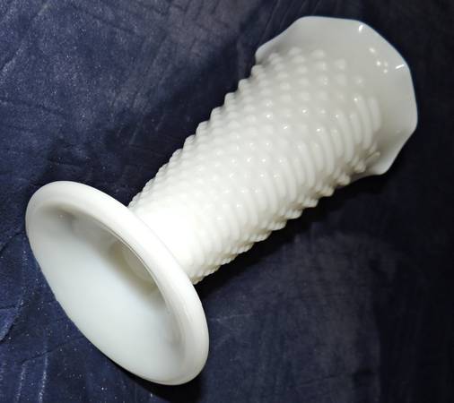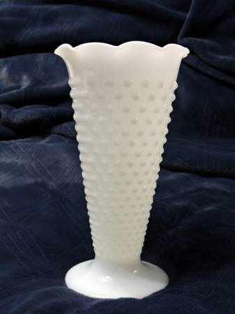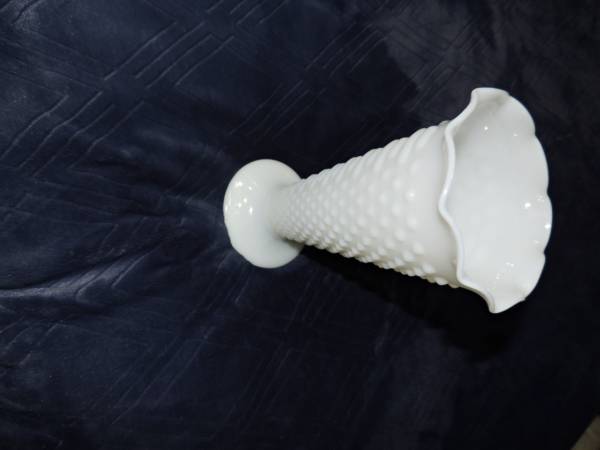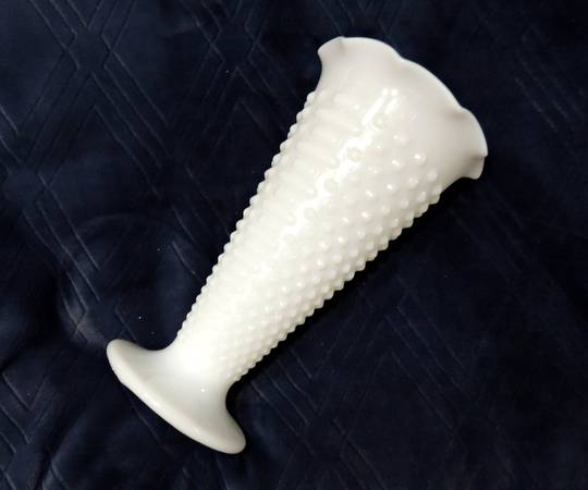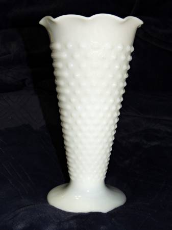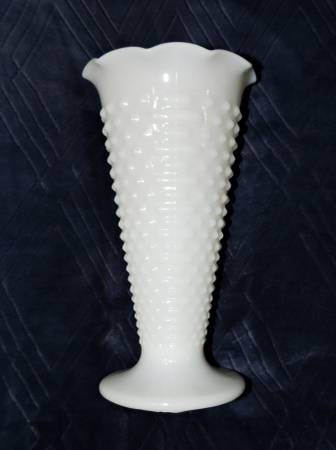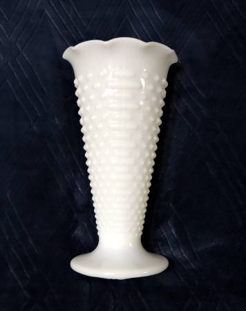 Here is an excellent milk glass vase I received from my mother, as she loved milk glass! Excellent condition. Slight rough spot on bottom pedestal from when it came out of the mold, I think.
