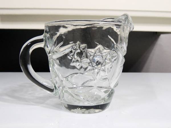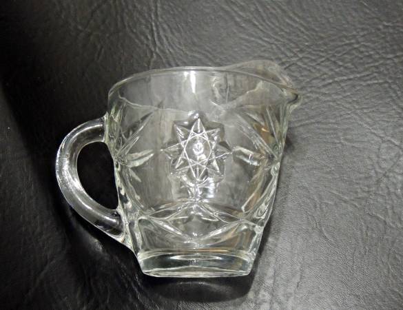 Vintage Star of David creamer by Anchor Hocking. One light line scratch when examined empty under bright light, otherwise very good vintage condition. What a beautiful way to serve your milk or cream!