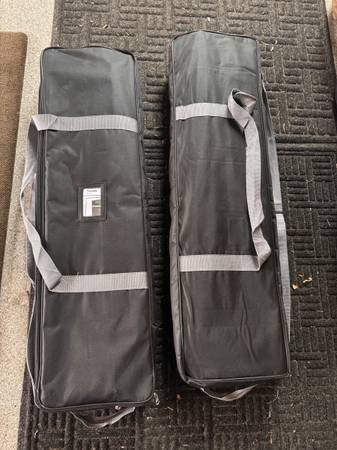 The portable retractable units are new, never been used. Each comes with their own carrying bag.