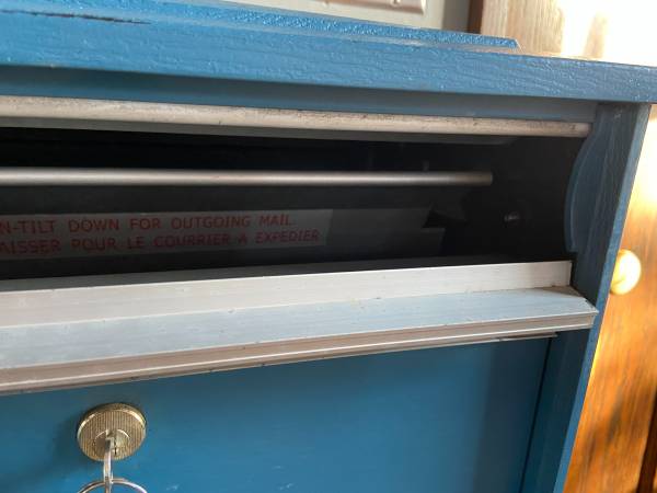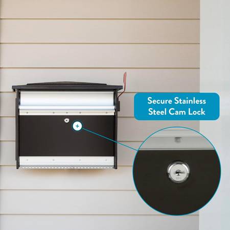 Concealed locking compartment protects mail from theft and includes two keys for household access