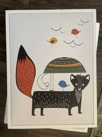 Sweet set of 3 pieces of art 13x17 Hanger on back HAPPY PLACE FOX BEAR