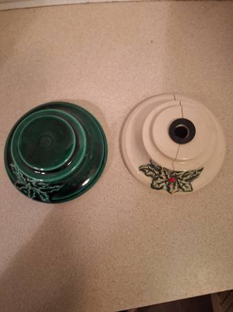 Two tiny Ceramic Christmas Tree Bases. One with a cracked and no electric, the other no electric and hole not drilled. $5 each. See photos to determine if it will fit your Tree. I also have other Ceramic Xmas Tree Bases. Cash only, pickup only in Robbinsdale MN. Give me a call show contact info